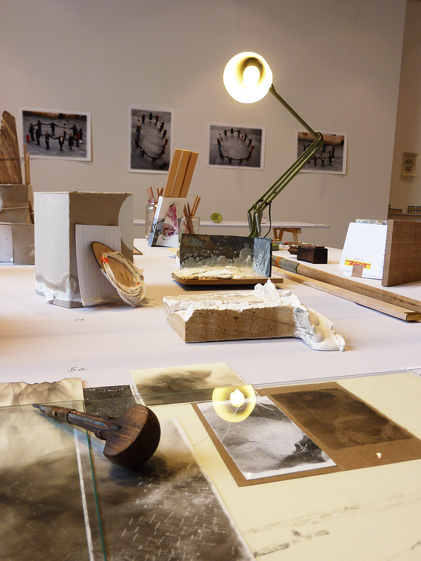 I work as a curator and exhibitions manager, mainly in contemporary craft, specialising in textiles. I work for arts organisations and also independently. At present (October 2010) I’ve been the Craft Development Curator at Smiths Row (formerlyBury St Edmunds Art Gallery) for two and a half years, and also the freelance installation manager since 2002 for Twisted Thread. who present the “The Knitting u0026amp; Stitching Show” and “Festival of Quilts” each year in the UK. I hope to shortly also start working with the Hub in Sleaford, the National Centre for Craft u0026amp; Design. This year I was also on the international selection panel for the4th Riga Textile and Fibre Art Triennial in Latvia. This picture shows me with my colleagues Rob, Gavin and Pete at The Knitting u0026amp; Stitching Show, Alexandra Palace London, 2009. We were preparing a gallery for Tom Lundberg, an American artist from Fort Collins, Colorado, who works in miniature textiles.