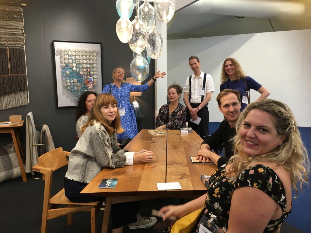 I’ve worked with the Decorex team, their technical suppliers and the Design-Nation members on creative themes each year, as well as stand layout, colours, press coverage, lighting, brochures and online content. In 2019 we had a bigger stand and showed work by eight designer/makers: ceramics by Melody Rose and Katherine Staples, copper lighting and sculpture by Emma-Jane Rule, weaving by Maria Sigma, furniture by Hugh Miller, hand blown lighting by Laura Elizabeth Glass and a collaborative chair project by Jonathan Rose and Angie Parker. Each was featured on our Design-Nation blog and we got great press coverage too.